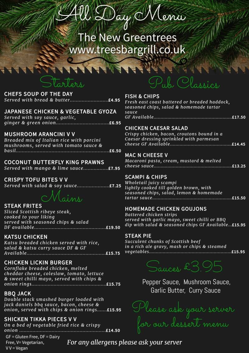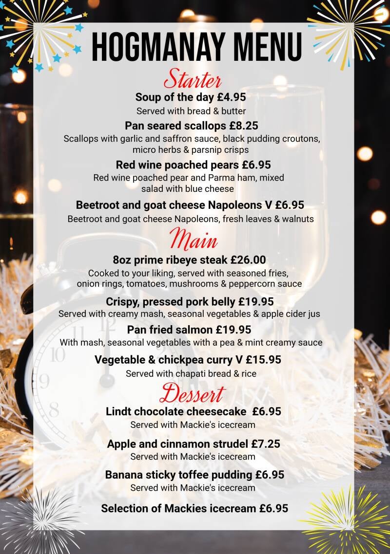 Hogmanay meals served 12-7pm